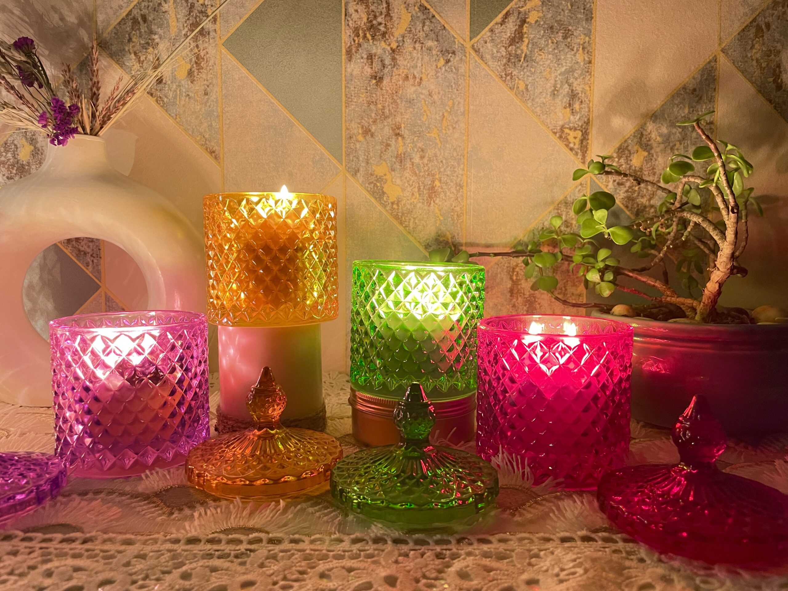 Earth Solace – Green Diamond cut jar candle Votive